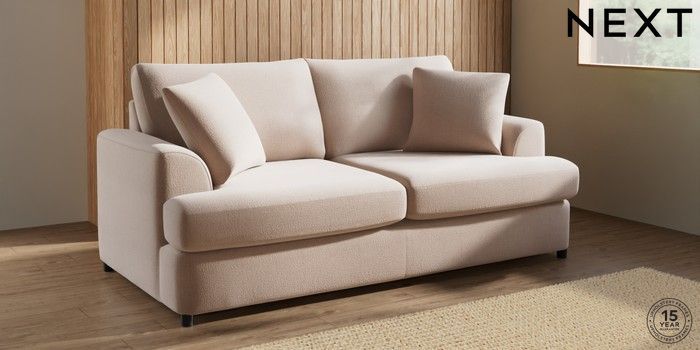 7.2.10 Parker Platform 3 Seater Small Sofa Relaxed Linen Look Mid Natural Glide | Made Click here to use our website with more accessibility support, for example screen readers