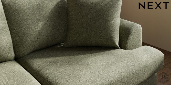 7.2.10 Parker Platform 3 Seater Small Sofa Tweedy Chenille Mid Moss Green Glide | Made Click here to use our website with more accessibility support, for example screen readers