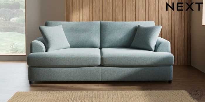 7.2.10 Parker Platform 3 Seater Sofa Chunky Marl Mid Blue Glide | Made Click here to use our website with more accessibility support, for example screen readers