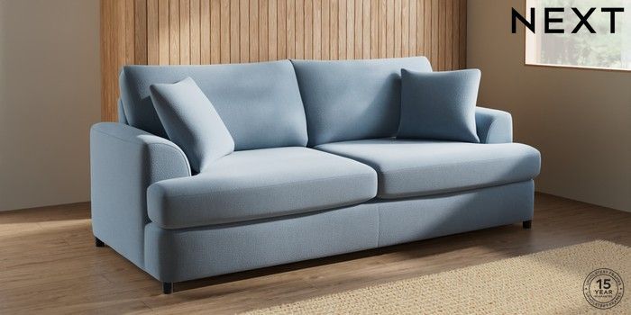 7.2.10 Parker Platform 3 Seater Sofa Relaxed Linen Look Mid Blue Glide | Made Click here to use our website with more accessibility support, for example screen readers