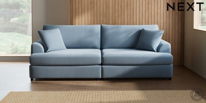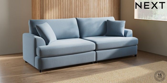 7.2.10 Parker Platform 4 Seater Sofa Relaxed Linen Look Mid Blue Glide | Made Click here to use our website with more accessibility support, for example screen readers
