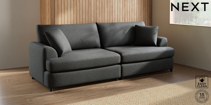 7.2.10 Parker Platform 4 Seater Sofa Tweedy Blend Easy Clean Charcoal Grey Glide | Made Click here to use our website with more accessibility support, for example screen readers