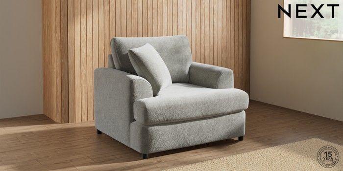 7.2.10 Parker Platform Armchair Chunky Chenille Light Grey Glide | Made Click here to use our website with more accessibility support, for example screen readers