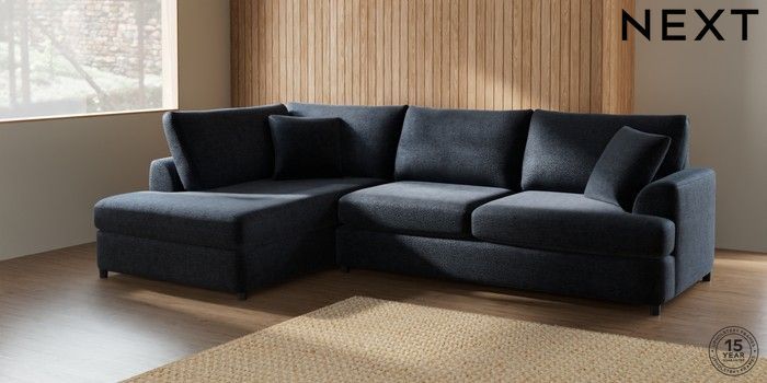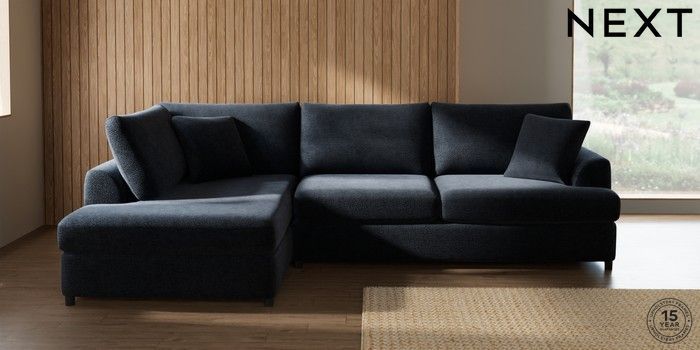 7.2.10 Parker Platform Large Corner Chaise - Left Hand Boucle Chenille Dark Slate Blue Glide | Made Click here to use our website with more accessibility support, for example screen readers