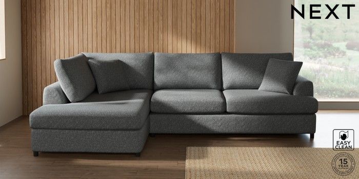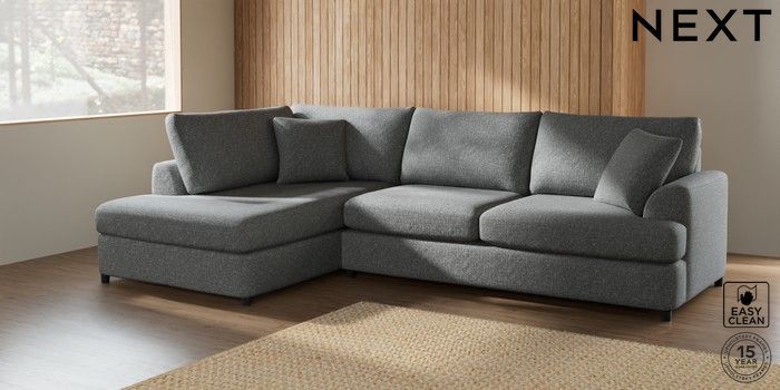 7.2.10 Parker Platform Large Corner Chaise - Left Hand Chunky Boucle Easy Clean Mid Grey Glide | Made Click here to use our website with more accessibility support, for example screen readers