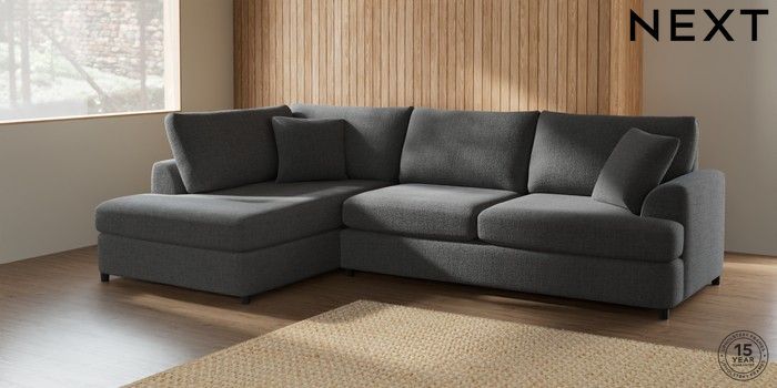7.2.10 Parker Platform Large Corner Chaise - Left Hand Chunky Texture Dark Grey Glide | Made Click here to use our website with more accessibility support, for example screen readers