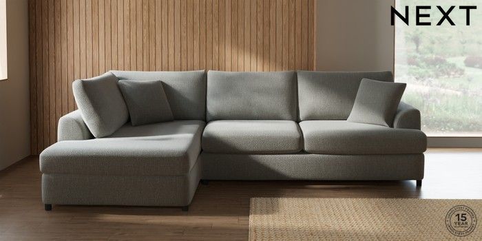 7.2.10 Parker Platform Large Corner Chaise - Left Hand Chunky Texture Dove Glide | Made Click here to use our website with more accessibility support, for example screen readers