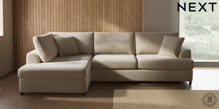 7.2.10 Parker Platform Large Corner Chaise - Left Hand Chunky Weave Cream Glide | Made Click here to use our website with more accessibility support, for example screen readers