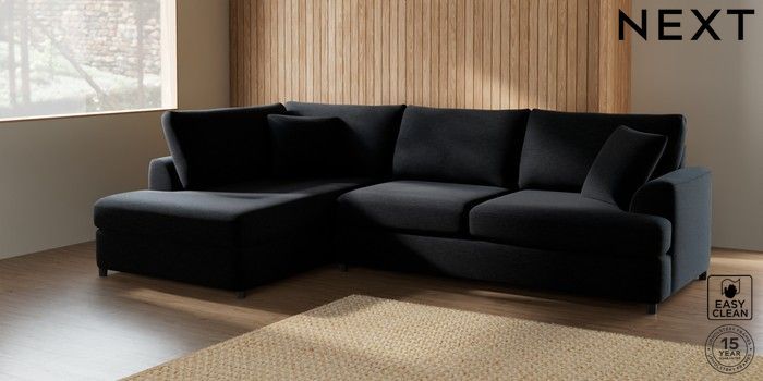 7.2.10 Parker Platform Large Corner Chaise - Left Hand Fine Chenille Easy Clean Black Glide | Made Click here to use our website with more accessibility support, for example screen readers