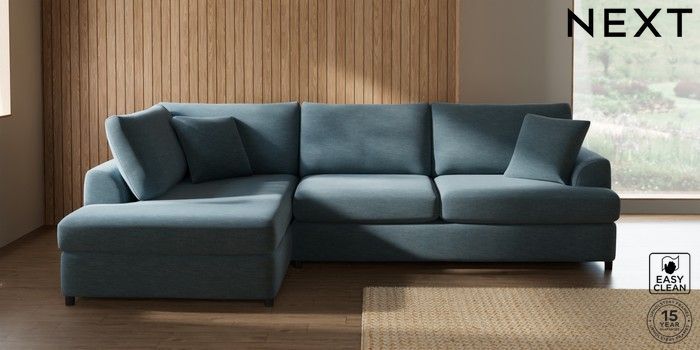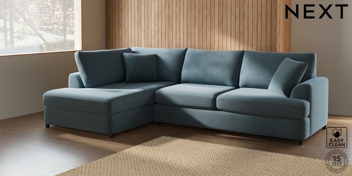 7.2.10 Parker Platform Large Corner Chaise - Left Hand Fine Chenille Easy Clean Mid Blue Glide | Made Click here to use our website with more accessibility support, for example screen readers