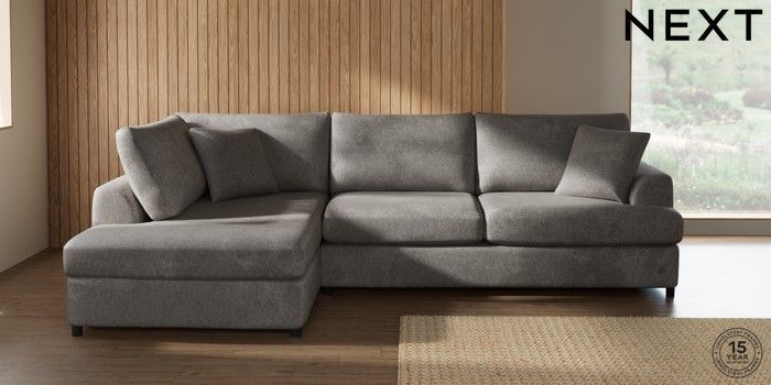 7.2.10 Parker Platform Large Corner Chaise - Left Hand Plush Chenille Light Grey Glide | Made Click here to use our website with more accessibility support, for example screen readers