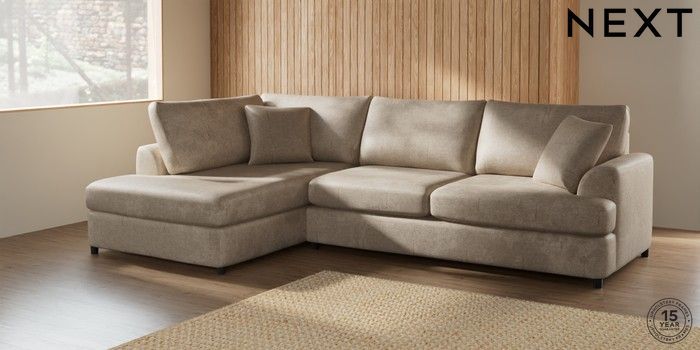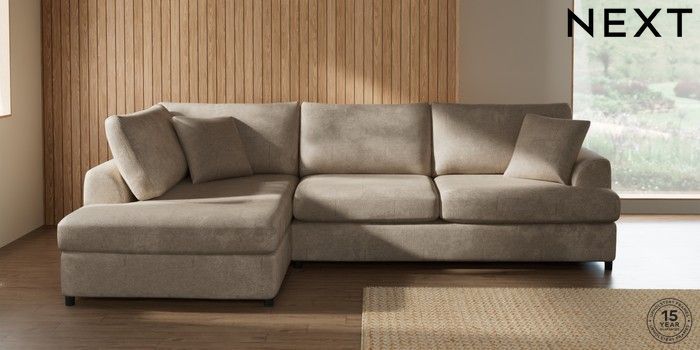 7.2.10 Parker Platform Large Corner Chaise - Left Hand Plush Chenille Light Natural Glide | Made Click here to use our website with more accessibility support, for example screen readers