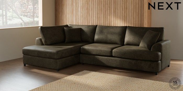 7.2.10 Parker Platform Large Corner Chaise - Left Hand Plush Chenille Moss Green Glide | Made Click here to use our website with more accessibility support, for example screen readers