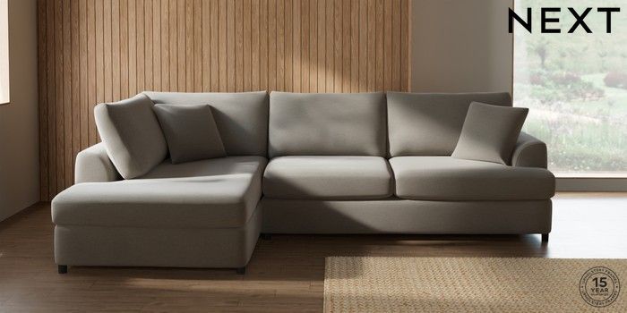7.2.10 Parker Platform Large Corner Chaise - Left Hand Ripple Chenille Light Natural Glide | Made Click here to use our website with more accessibility support, for example screen readers