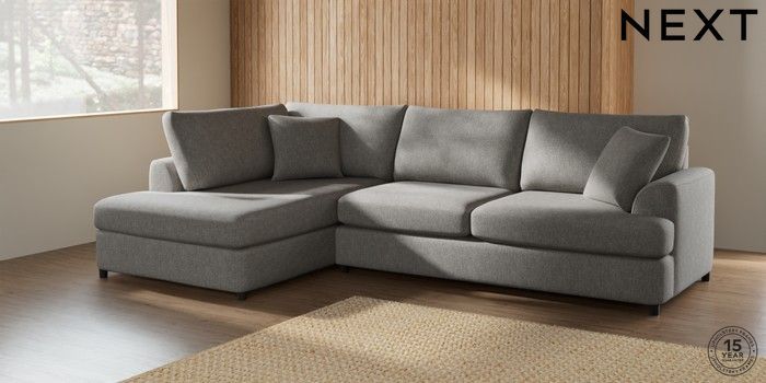 7.2.10 Parker Platform Large Corner Chaise - Left Hand Tweedy Chenille Mid Grey Glide | Made Click here to use our website with more accessibility support, for example screen readers