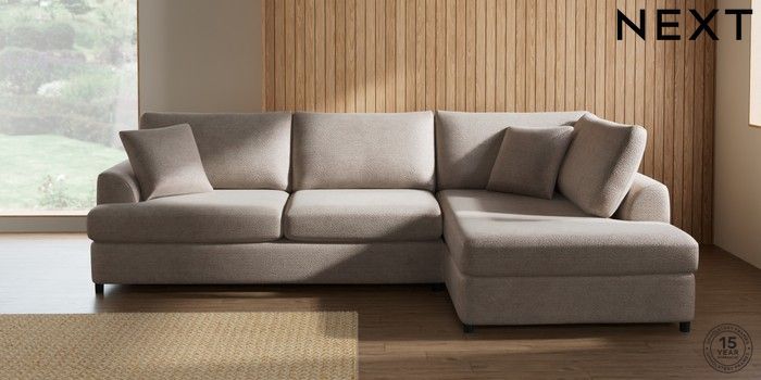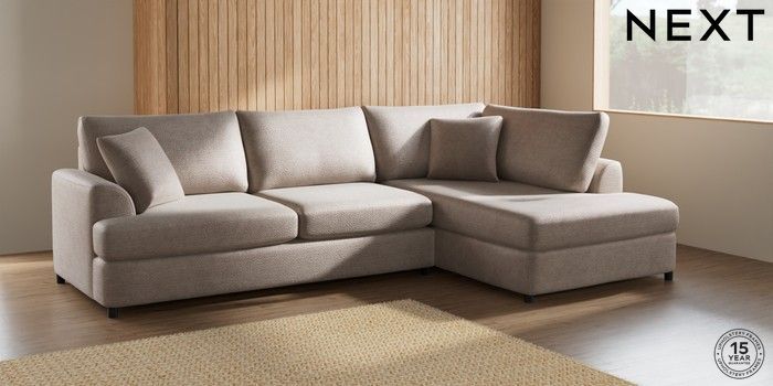 7.2.10 Parker Platform Large Corner Chaise - Right Hand Boucle Chenille Light Natural Glide | Made Click here to use our website with more accessibility support, for example screen readers
