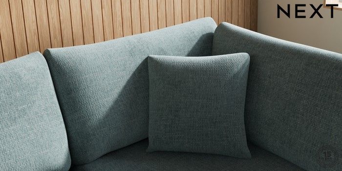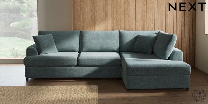 7.2.10 Parker Platform Large Corner Chaise - Right Hand Chunky Chenille Light Teal Green Glide | Made Click here to use our website with more accessibility support, for example screen readers