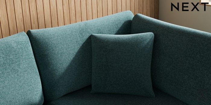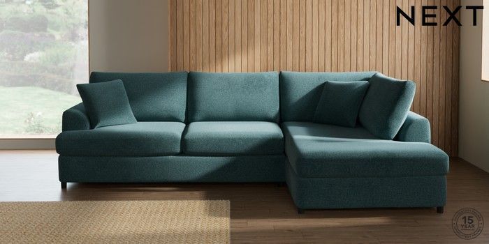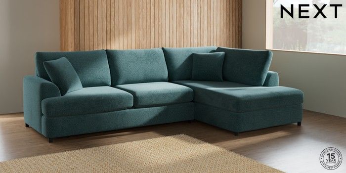 7.2.10 Parker Platform Large Corner Chaise - Right Hand Chunky Chenille Mid Teal Green Glide | Made Click here to use our website with more accessibility support, for example screen readers