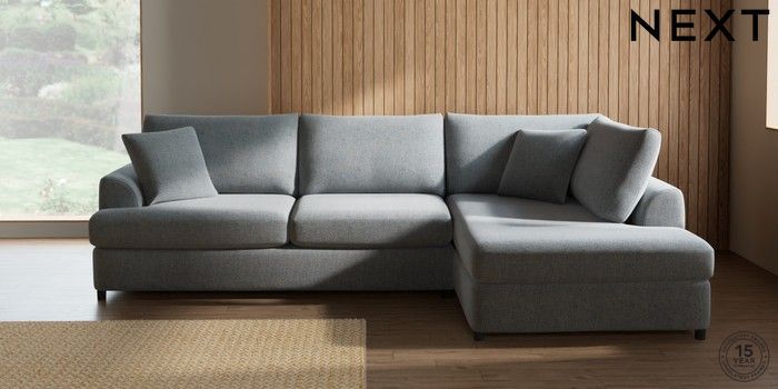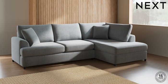 7.2.10 Parker Platform Large Corner Chaise - Right Hand Chunky Marl Mid Grey Glide | Made Click here to use our website with more accessibility support, for example screen readers