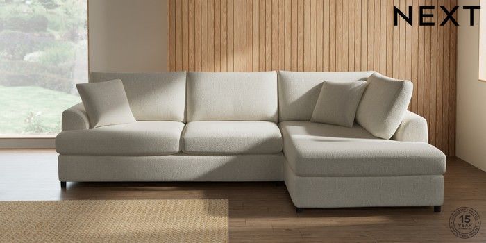 7.2.10 Parker Platform Large Corner Chaise - Right Hand Chunky Texture Oyster Glide | Made Click here to use our website with more accessibility support, for example screen readers
