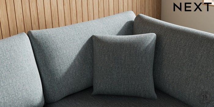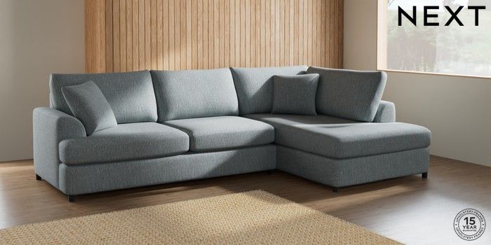 7.2.10 Parker Platform Large Corner Chaise - Right Hand Chunky Weave Mid Blue Glide | Made Click here to use our website with more accessibility support, for example screen readers