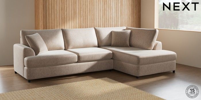 7.2.10 Parker Platform Large Corner Chaise - Right Hand Cotswold Chenille Light Natural Glide | Made Click here to use our website with more accessibility support, for example screen readers