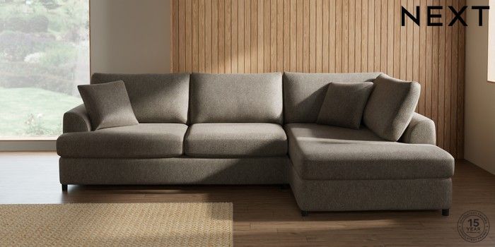 7.2.10 Parker Platform Large Corner Chaise - Right Hand Cotswold Chenille Mid Mink Brown Glide | Made Click here to use our website with more accessibility support, for example screen readers