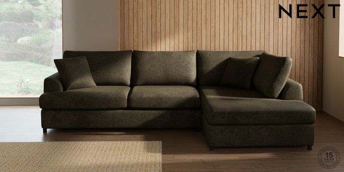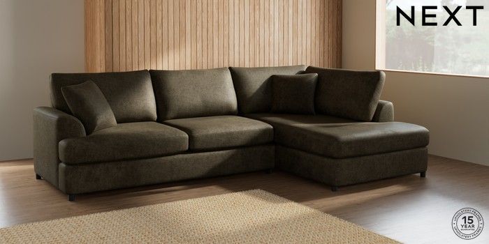 7.2.10 Parker Platform Large Corner Chaise - Right Hand Plush Chenille Moss Green Glide | Made Click here to use our website with more accessibility support, for example screen readers
