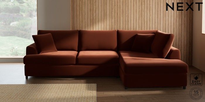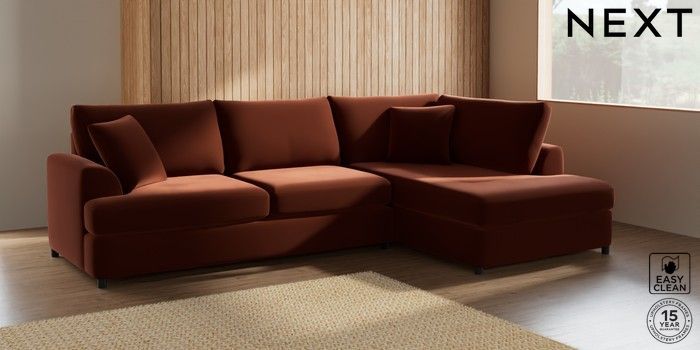 7.2.10 Parker Platform Large Corner Chaise - Right Hand Plush Velvet Easy Clean Ginger Orange Glide | Made Click here to use our website with more accessibility support, for example screen readers