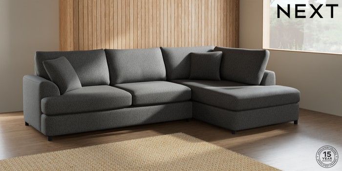 7.2.10 Parker Platform Large Corner Chaise - Right Hand Tweedy Chenille Dark Grey Glide | Made Click here to use our website with more accessibility support, for example screen readers