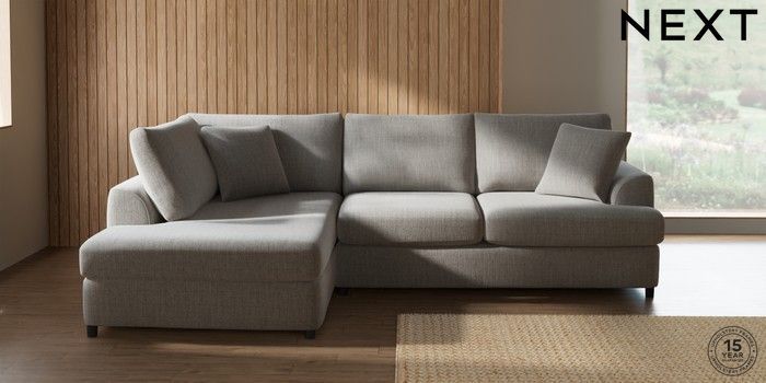 7.2.10 Parker Platform Medium Corner Chaise - Left Hand Chunky Weave Dove Grey Glide | Made Click here to use our website with more accessibility support, for example screen readers