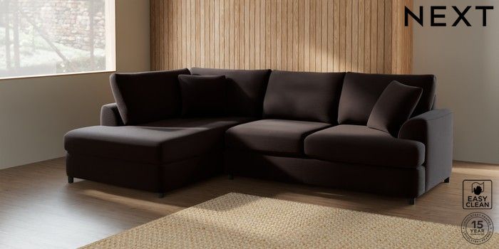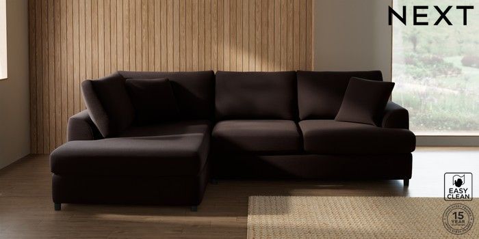 7.2.10 Parker Platform Medium Corner Chaise - Left Hand Fine Chenille Easy Clean Chocolate Brown Glide | Made Click here to use our website with more accessibility support, for example screen readers