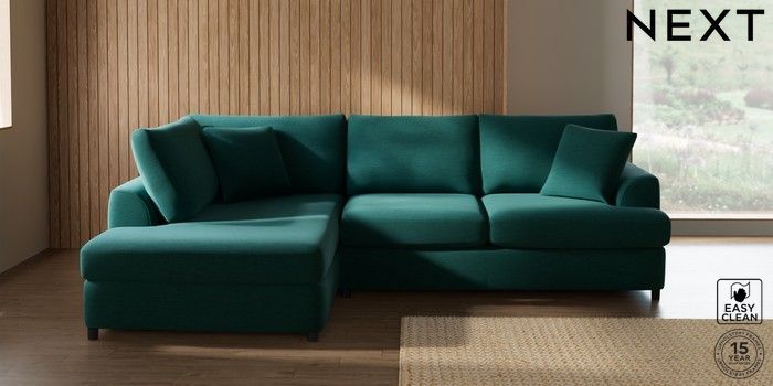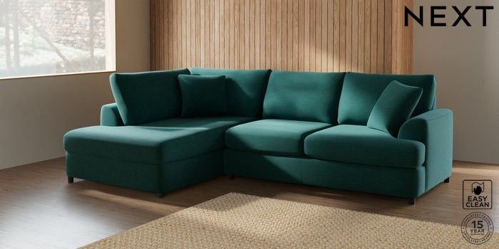7.2.10 Parker Platform Medium Corner Chaise - Left Hand Fine Chenille Easy Clean Dark Juniper Green Glide | Made Click here to use our website with more accessibility support, for example screen readers