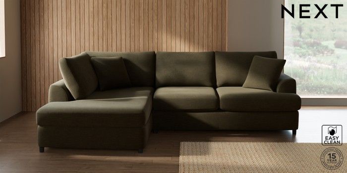 7.2.10 Parker Platform Medium Corner Chaise - Left Hand Fine Chenille Easy Clean Dark Moss Green Glide | Made Click here to use our website with more accessibility support, for example screen readers