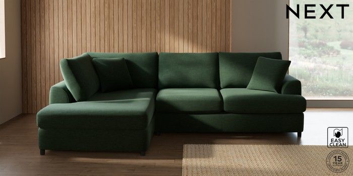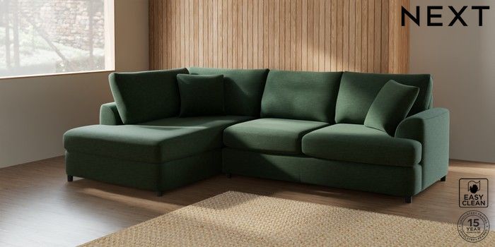 7.2.10 Parker Platform Medium Corner Chaise - Left Hand Fine Chenille Easy Clean Mid Khaki Green Glide | Made Click here to use our website with more accessibility support, for example screen readers