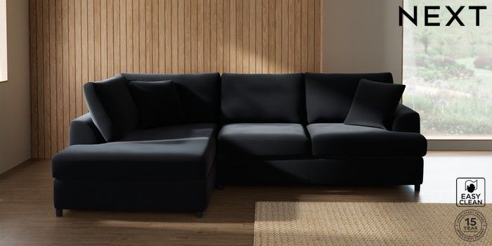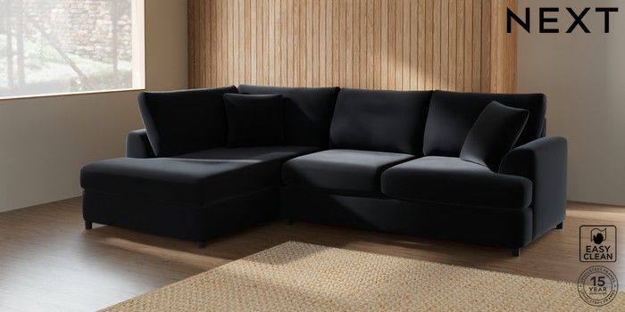 7.2.10 Parker Platform Medium Corner Chaise - Left Hand Plush Velvet Easy Clean Charcoal Grey Glide | Made Click here to use our website with more accessibility support, for example screen readers