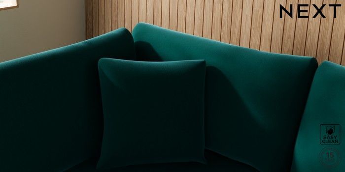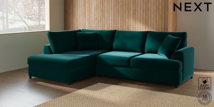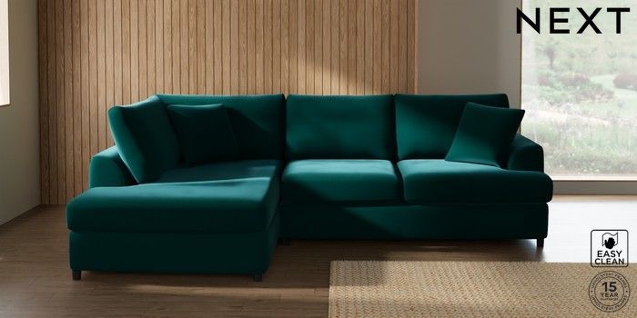 7.2.10 Parker Platform Medium Corner Chaise - Left Hand Plush Velvet Easy Clean Juniper Green Glide | Made Click here to use our website with more accessibility support, for example screen readers