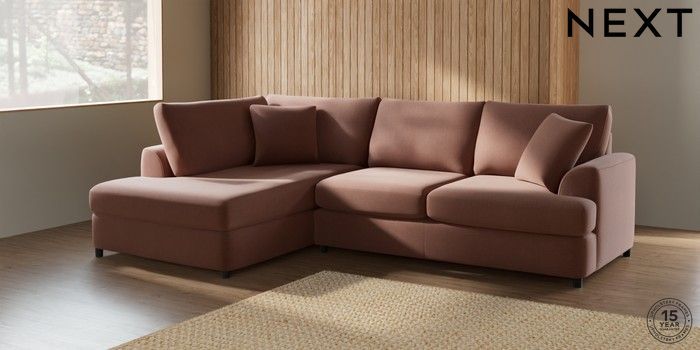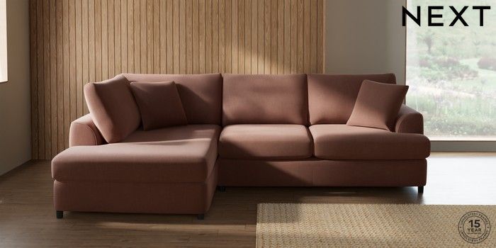 7.2.10 Parker Platform Medium Corner Chaise - Left Hand Relaxed Linen Look Light Rust Brown Glide | Made Click here to use our website with more accessibility support, for example screen readers