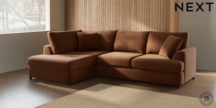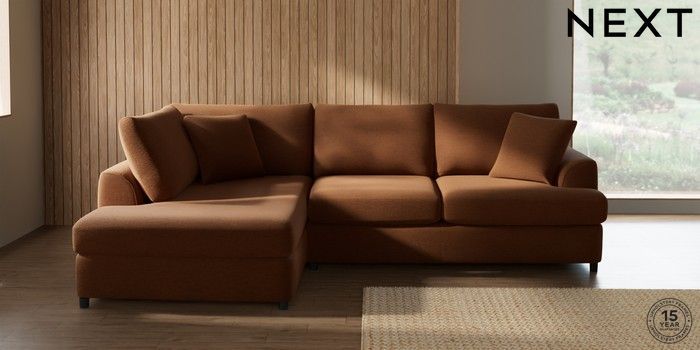7.2.10 Parker Platform Medium Corner Chaise - Left Hand Ripple Chenille Mid Rust Brown Glide | Made Click here to use our website with more accessibility support, for example screen readers