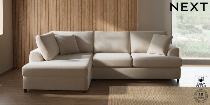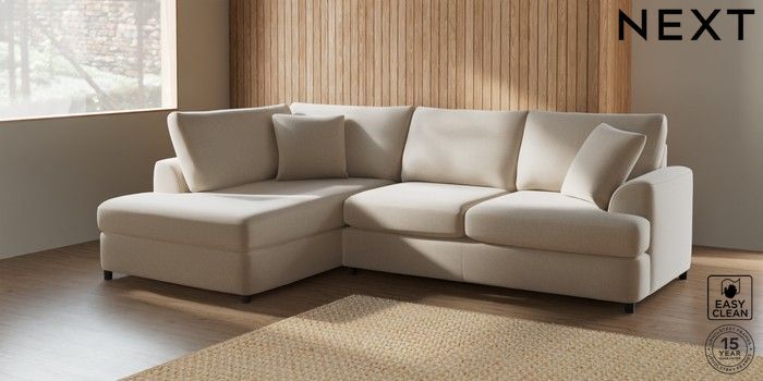 7.2.10 Parker Platform Medium Corner Chaise - Left Hand Tweedy Blend Easy Clean Oyster Glide | Made Click here to use our website with more accessibility support, for example screen readers