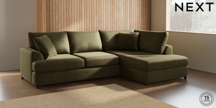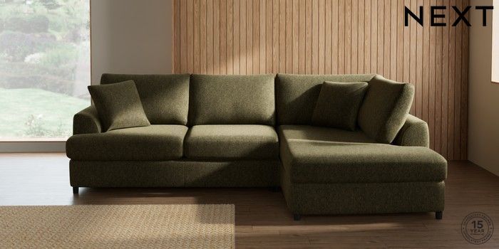 7.2.10 Parker Platform Medium Corner Chaise - Right Hand Cotswold Chenille Dark Green Glide | Made Click here to use our website with more accessibility support, for example screen readers