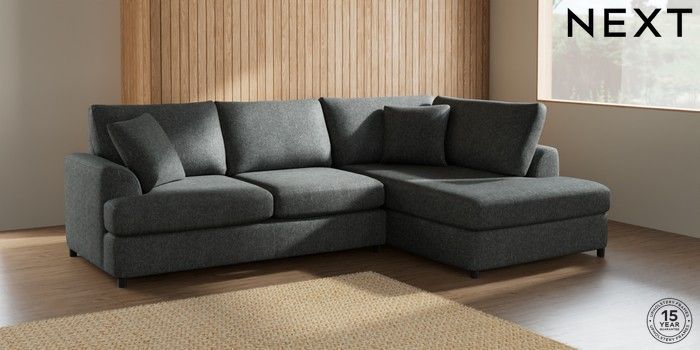 7.2.10 Parker Platform Medium Corner Chaise - Right Hand Cotswold Chenille Dark Grey Glide | Made Click here to use our website with more accessibility support, for example screen readers