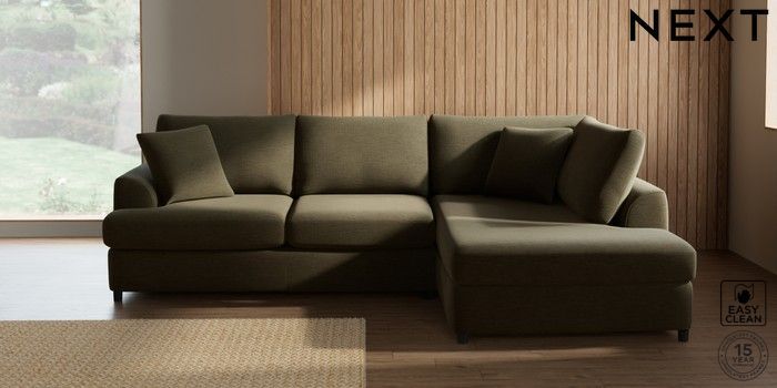 7.2.10 Parker Platform Medium Corner Chaise - Right Hand Fine Chenille Easy Clean Dark Moss Green Glide | Made Click here to use our website with more accessibility support, for example screen readers