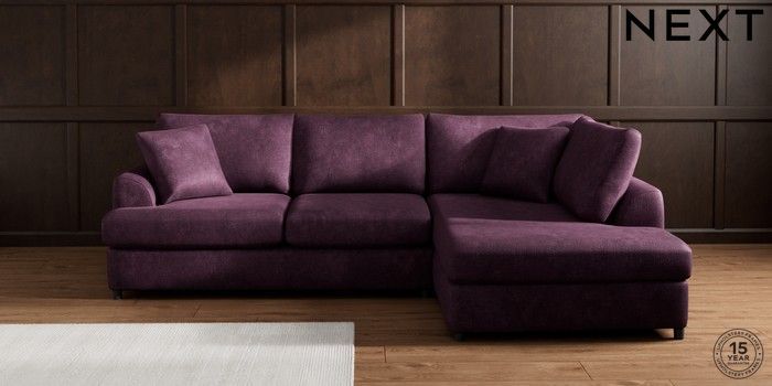 7.2.10 Parker Platform Medium Corner Chaise - Right Hand Plush Chenille Dark Plum Purple Glide | Made Click here to use our website with more accessibility support, for example screen readers