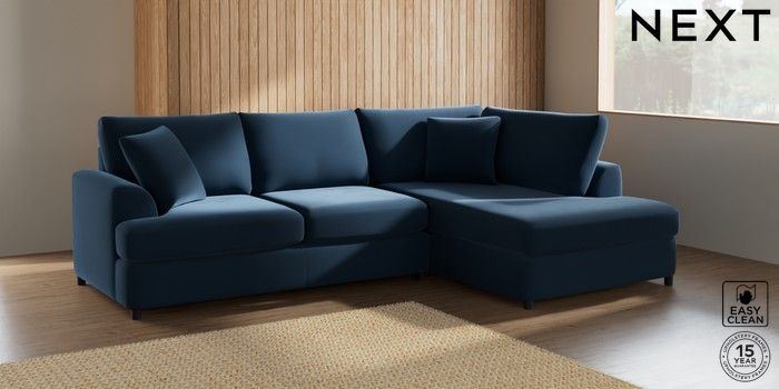 7.2.10 Parker Platform Medium Corner Chaise - Right Hand Plush Velvet Easy Clean Airforce Blue Glide | Made Click here to use our website with more accessibility support, for example screen readers