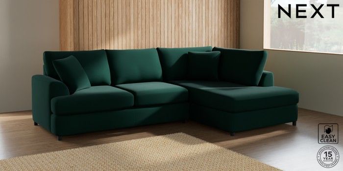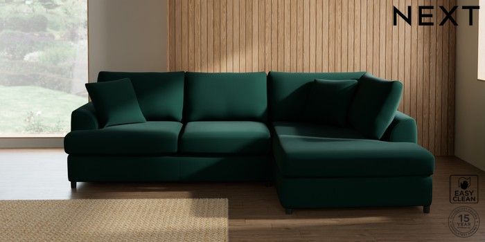 7.2.10 Parker Platform Medium Corner Chaise - Right Hand Plush Velvet Easy Clean Bottle Green Glide | Made Click here to use our website with more accessibility support, for example screen readers