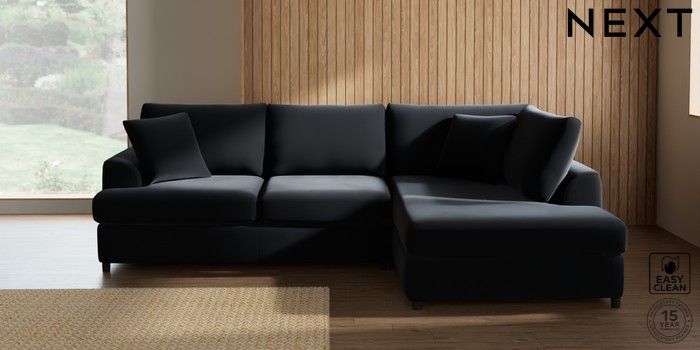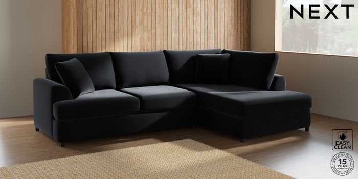 7.2.10 Parker Platform Medium Corner Chaise - Right Hand Plush Velvet Easy Clean Charcoal Grey Glide | Made Click here to use our website with more accessibility support, for example screen readers