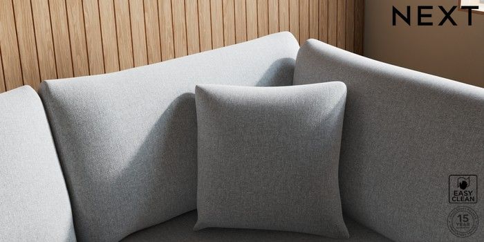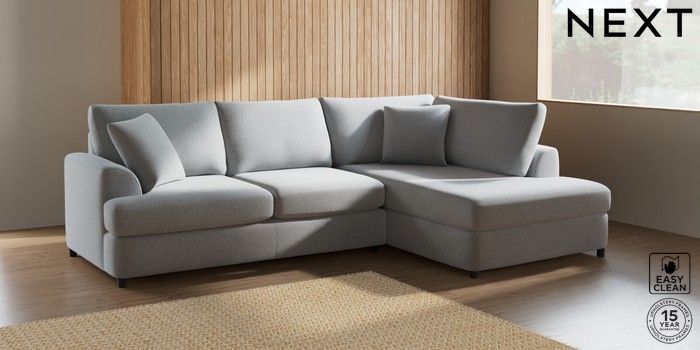 7.2.10 Parker Platform Medium Corner Chaise - Right Hand Tweedy Blend Easy Clean Light Silver Grey Glide | Made Click here to use our website with more accessibility support, for example screen readers