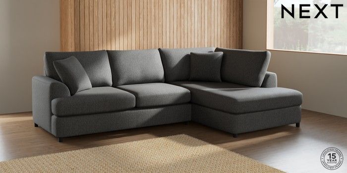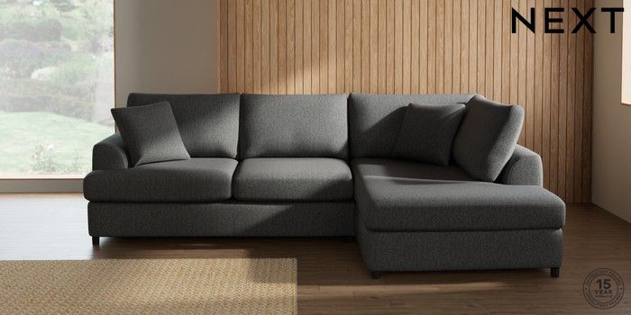 7.2.10 Parker Platform Medium Corner Chaise - Right Hand Tweedy Chenille Dark Grey Glide | Made Click here to use our website with more accessibility support, for example screen readers