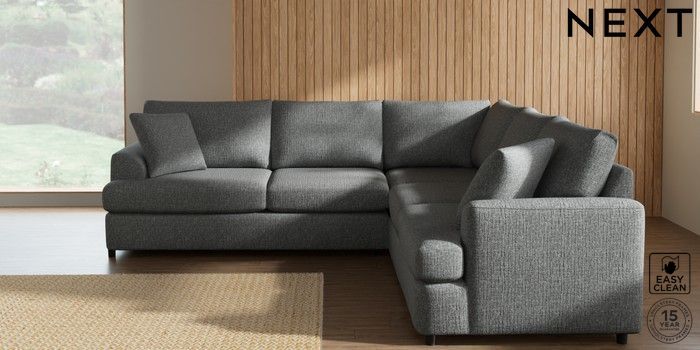 7.2.10 Parker Platform Medium Corner Sofa - Universal Chunky Boucle Easy Clean Mid Grey Glide | Made Click here to use our website with more accessibility support, for example screen readers